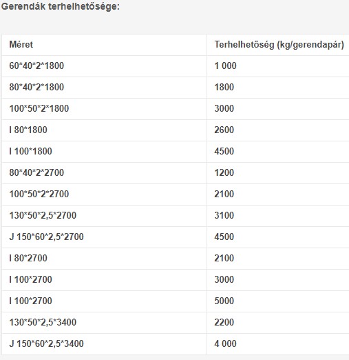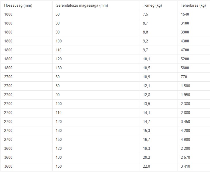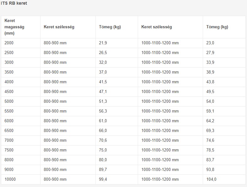 Keretek magassága: 3000-9000 mm között 500 mm osztással.
